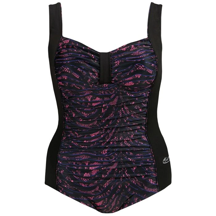 A perfect blend of fun and sophistication. Soft shirring in front. Scoop back. Conservative leg cut. Soft Foam Bra. Fully lined front and back. “Prorated 1-year warranty” Made of Ultra-chlorine-resistant ChloroGuardâ„¢. Imported.