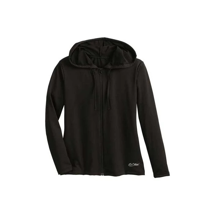 A hood with drawstrings adds coverage to our popular Long Sleeve Aqua Shirt. Complete with handy front zipper and 50+ UPF sun protection, this cover-up is a perfect choice to keep the chill off before, during or after your water workouts. Unlined. Made in USA of ultra-chlorine-resistant ChloroGuardâ„¢.