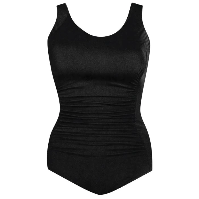 The camouflaging shirred front panel stylishly keeps your tummy under wraps. Fully lined, front and back. Conservative leg cut. Soft Foam Bra System. Scoop back. Long torso (where offered) is 1 1/2″ longer than regular torso. Made in USA of ultra-chlorine-resistant ChloroGuardâ„¢.