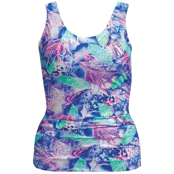 Gathered sides create soft shirring across the front of this top that both conceals and flatters. As comfortable as it is attractive. Scoop back. Soft Foam Bra System consists of a separate liner with elastic at the bottom under the bust and shaped foam pads sewn in for added coverage. Lined in the front only. Generous Length. “Prorated 1-year warranty” Imported of ultra-chlorine-resistant ChloroGuard™.